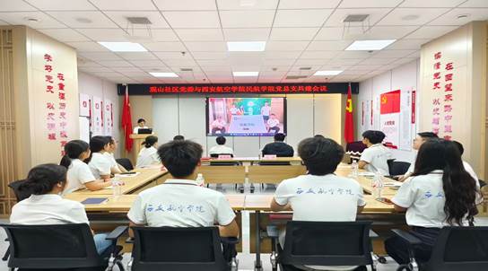 龙丹则紧扣“以党建为引 绘共建蓝图”的主题,强调此次共建是高校履行社会服务职能的重要举措,更是党建引领下的生动实践。龙丹介绍,学院将依托航空安全知识、应急救援技能等专业优势,与社区治理场景深度融合,打造“民航+社区”特色实践品牌。他还提及双方将构建“组织联建、资源联享、人才联育、发展联动”的“四联”机制,并规划了未来三年“1+2+3”合作模式:以1个共建办公室统筹协调,2个专项工作组推进落实,3级联动机制保障执行,同步设立“航空科普角”“社区服务岗”,共建“大思政课”实践基地。