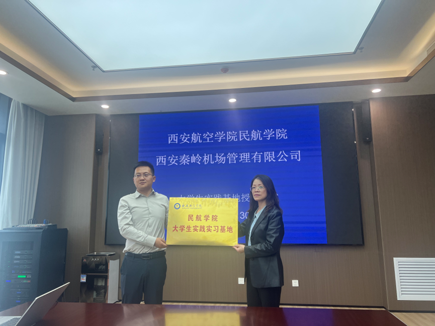 丁琦代表SUNBET申搏官网SUNBET申搏官网为西安秦岭机场管理有限公司授牌校外实习实践基地,武明代表公司郑重接牌。并合影留念,见证这一重要时刻。